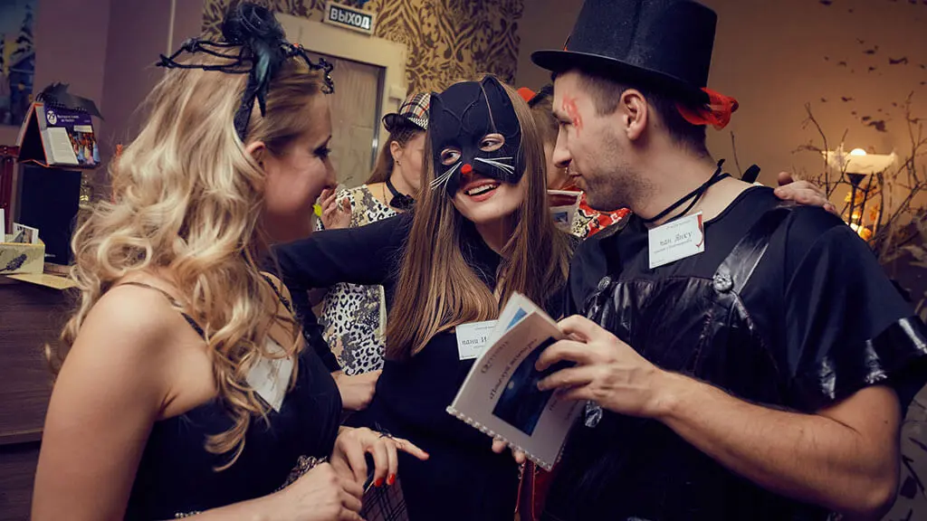 Тимбилдинг квест «Поцелуй вампира»: На этой загадочной вечеринке собрались необычные гости: оборотни мурлыкают на террасе, вампиры с изыском вальсируют, а все остальные внимательно следят, чтобы не стать неожиданной закуской.