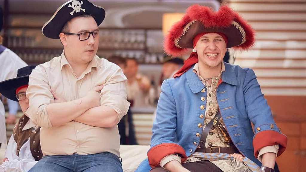 Два его помощника — Нэнси и Джек — поссорились, разделили команду на два корабля и отправились искать сокровища Флинта.