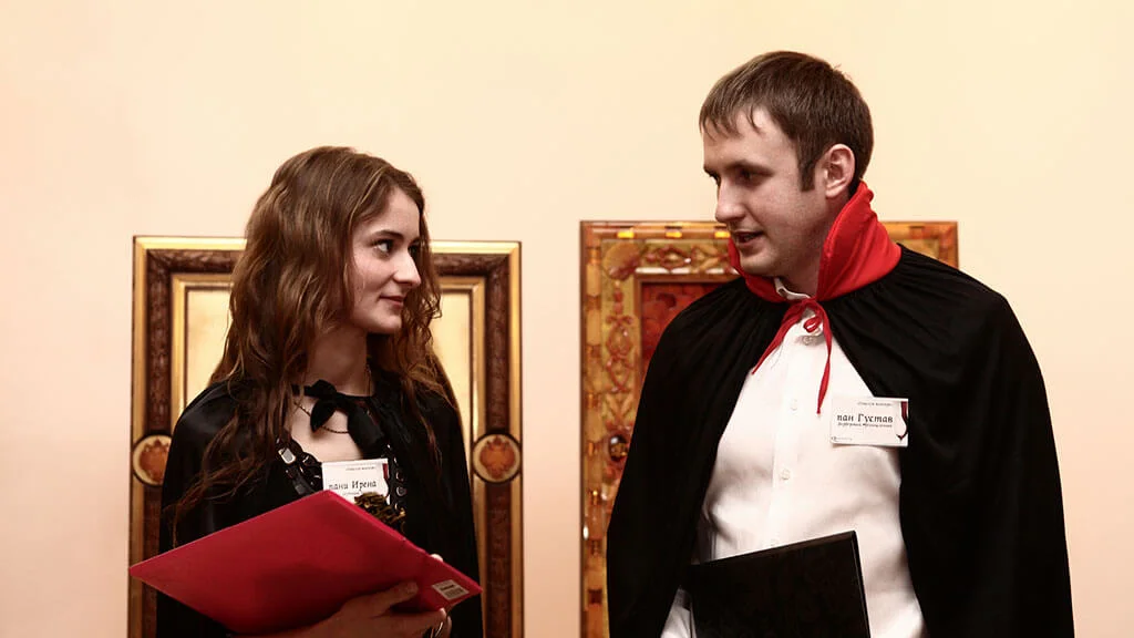 Знакомые Каминского: ценители древностей, учёные и состоятельные торговцы — обсуждают дела, вальсируют с дамами или просто отдыхают в ожидании трапезы. Приехал известный писатель пан Ярошевский, ему прочат титул нового Эдгара По, и всем не терпится узнать, о чём его новая книга.